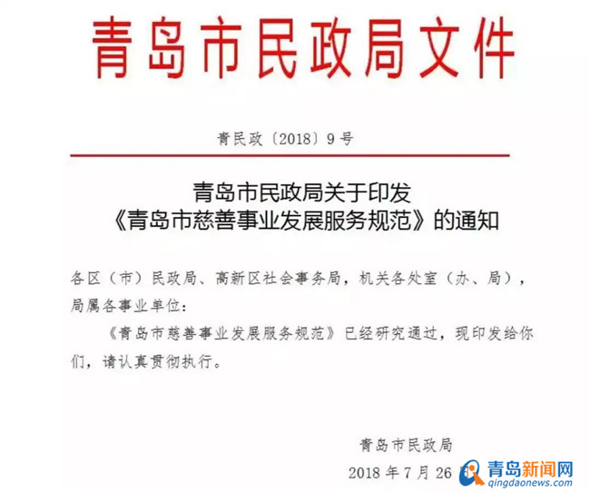 青島新聞網(wǎng) 6月10日訊 2018年7月26日,青島市民政局印發(fā)《青島市慈善事業(yè)發(fā)展服務(wù)規(guī)范》,這是國內(nèi)首個促進(jìn)慈善事業(yè)發(fā)展服務(wù)的標(biāo)準(zhǔn)化規(guī)范文件。一起來看看,規(guī)范中提到了哪些內(nèi)容。