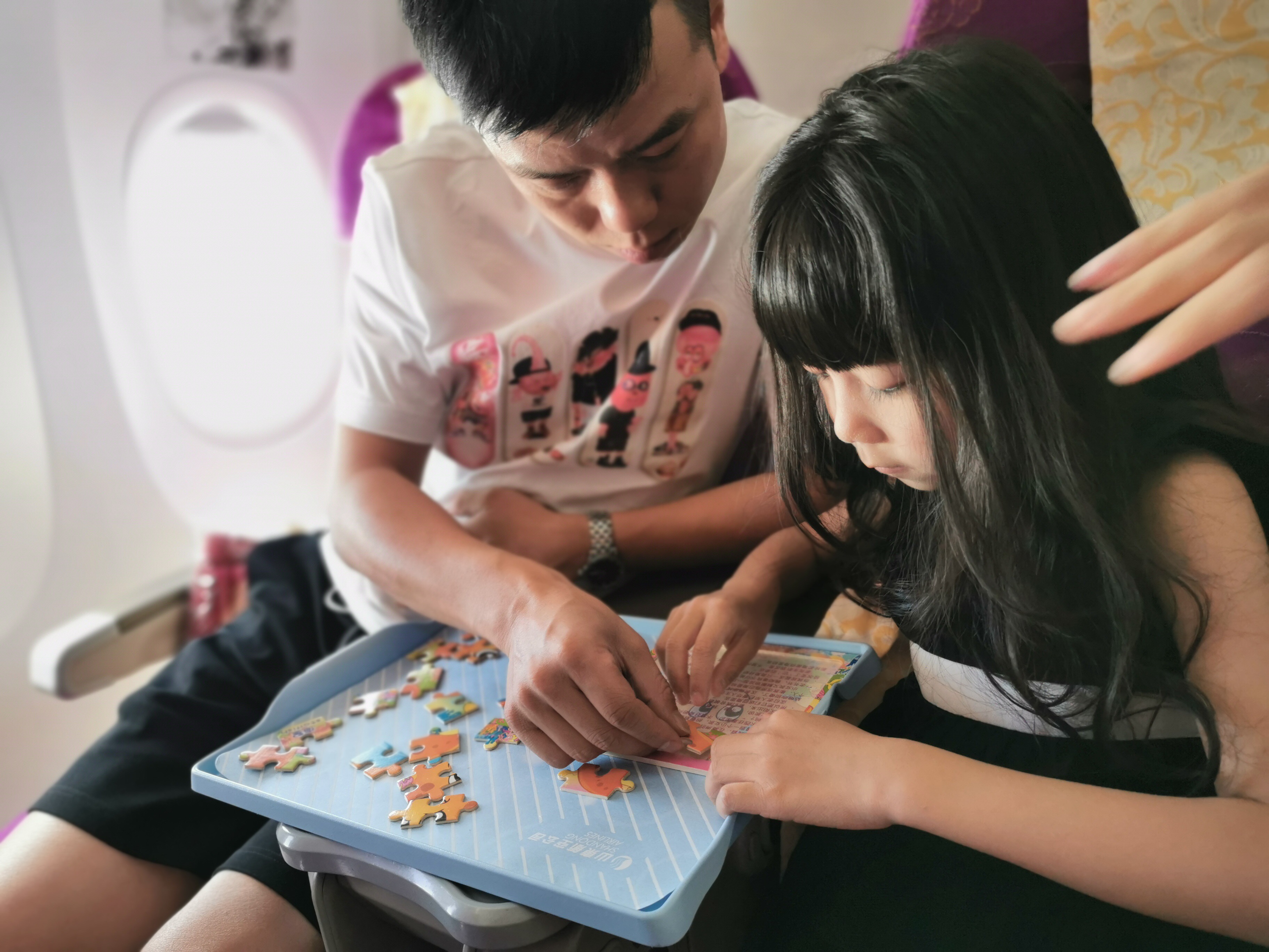“今天是中國航海日,第一個游戲為海洋主題眼力手力大比拼!”乘務(wù)員邀請了六位乘客,并把他們分成兩組進(jìn)行一對一海洋拼圖比賽。隨著乘務(wù)員一聲令下,比賽開始,時間一秒一秒的過去。“我拼完了!”一名乘客僅用時1分鐘就將拼圖拼完。獲得第一名的乘客收到了乘務(wù)員送上的山航飛機(jī)模型,其他人則獲得了小帆船禮品。接下來,進(jìn)行了海洋知識問答,乘務(wù)員從踴躍參與的乘客中選出4人參與問答。“在海洋的各種污染物中,對海洋的破壞最嚴(yán)重、最普遍的是……”在乘客緊鎖眉頭的思考中,海洋知識問答活動結(jié)束。參與問答的乘客依次獲得了乘務(wù)員送出的海洋動物毛絨玩具。