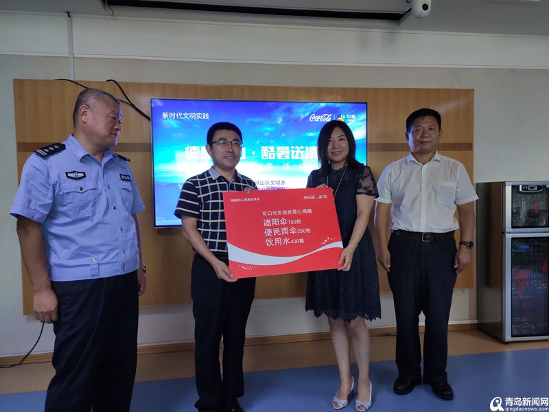 為給奮戰(zhàn)在一線的志愿者和交警同志送去關(guān)愛(ài)和清涼,2019年7月24日,嶗山區(qū)組織“德耀嶗山·酷暑送清涼”志愿服務(wù)活動(dòng),鑫淼社工服務(wù)中心會(huì)長(zhǎng)張守鑫代表嶗山區(qū)文明交通志愿者介紹了近期工作情況,就開(kāi)展嶗山區(qū)志愿服務(wù)工作和愛(ài)心企業(yè)公益活動(dòng)進(jìn)行了座談,在愛(ài)心捐贈(zèng)環(huán)節(jié)上,中糧可口可樂(lè)公司將首批愛(ài)心物資400箱飲用水、150把遮陽(yáng)傘、280把便民雨傘捐贈(zèng)給嶗山區(qū)文明交通志愿者、學(xué)雷鋒志愿服務(wù)站點(diǎn)和一線交警。隨后,嶗山區(qū)委宣傳部(區(qū)文明辦)、嶗山公安分局交警大隊(duì)、中糧可口可樂(lè)飲料(山東)有限公司一行,到交通路口看望高溫下堅(jiān)守在交通文明崗位一線的志愿者和交警同志,為大家送上防暑降溫大禮包。