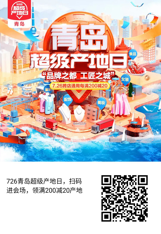 7月26日,“青島超級產地日”活動在阿里1688平臺上線,精選女裝、童裝、配飾、美妝工具、食品五大品類,集結近千家青島產地企業(yè)、近萬款優(yōu)選好貨,以“源頭貨,一手價”將青島制造優(yōu)質產品呈現給全球經銷商。