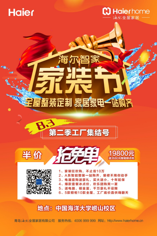下午,一場(chǎng)盛大的家裝饕餮盛宴將在中國(guó)海洋大學(xué)嶗山校區(qū)上演。豐富產(chǎn)品、冰點(diǎn)價(jià)格、超級(jí)禮遇、滿(mǎn)額即贈(zèng)、金花四濺……精彩停不下來(lái)!