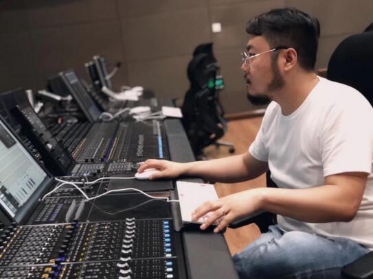 韓睿達(dá)老師工作中(專業(yè)的錄音調(diào)試儀器)