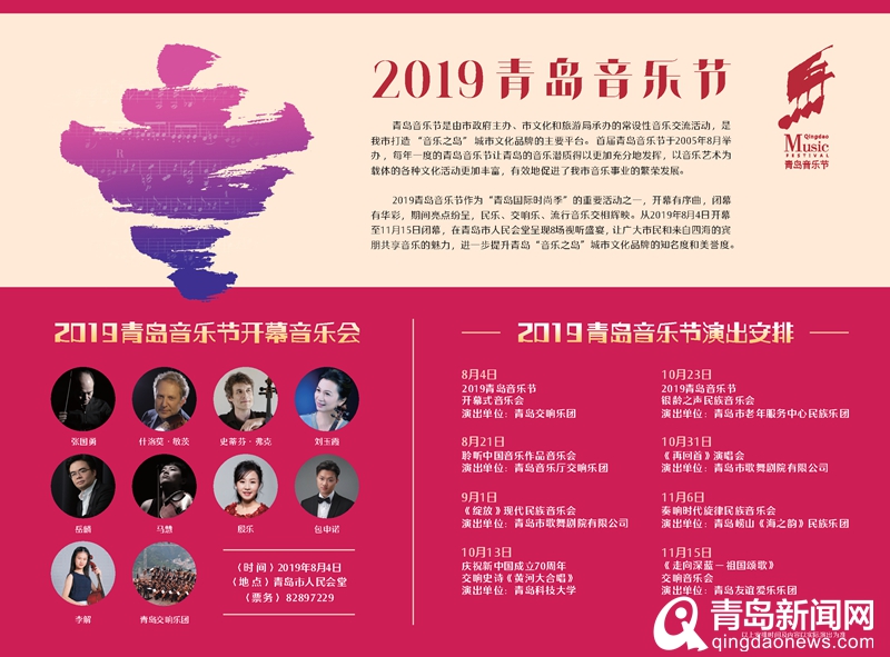 2019青島音樂節(jié)作為“青島國(guó)際時(shí)尚季”的重要活動(dòng)之一,從2019年8月開幕至11月閉幕,在青島市人民會(huì)堂呈現(xiàn)8場(chǎng)視聽盛宴,讓來自四海的賓朋共享音樂的魅力。