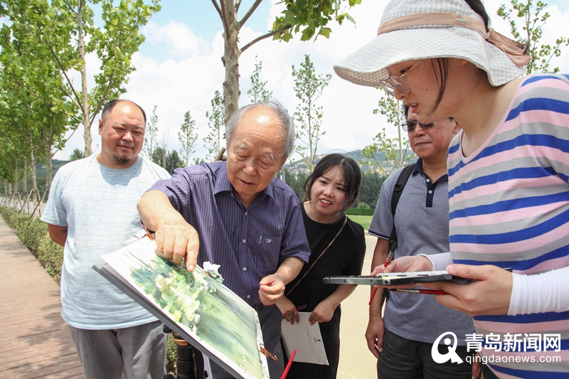 2019“萬(wàn)科青島國(guó)際水彩藝術(shù)季”是青島國(guó)際時(shí)尚季的內(nèi)容之一,由中共青島市委宣傳部指導(dǎo),青島報(bào)業(yè)傳媒集團(tuán)、青島文化和旅游局主辦。系列活動(dòng)以水彩藝術(shù)展示交流為載體,水彩采風(fēng)、寫(xiě)生貫穿整個(gè)藝術(shù)季,來(lái)青參加展覽的中外藝術(shù)家以及水彩研修活動(dòng)的各地藝術(shù)愛(ài)好者,協(xié)同青島的專業(yè)協(xié)會(huì)、藝術(shù)院校、美術(shù)機(jī)構(gòu)、水彩藝術(shù)群體等,分為多個(gè)團(tuán)隊(duì)前往市內(nèi)老城區(qū)、嶗山漁村等景區(qū)采風(fēng)寫(xiě)生,描繪山海之美,感受青島自然風(fēng)物與海洋文化。昨日的采風(fēng)寫(xiě)生活動(dòng),恰逢晴日,藍(lán)天白云下的紅瓦綠樹(shù),點(diǎn)亮了藝術(shù)家們的創(chuàng)作之心。關(guān)維興等藝術(shù)家還在現(xiàn)場(chǎng)指導(dǎo)了島城水彩愛(ài)好者作畫(huà)。