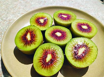 用心的栽培,換來的是長勢喜人。油油綠葉中,一串串毛茸茸的獼猴桃讓人一看就忍不住想摸一摸,甚至摘下來大吃幾口?!艾F(xiàn)在早熟品種——紅心獼猴桃已經(jīng)開始成熟,這幾天我們正忙著采摘?!备倒鹦勒藥讉€獼猴桃讓記者嘗嘗,果然又軟又甜,果肉有入口即化的感覺。傅桂欣又摘了幾個果子,讓工作人員拿到實(shí)驗(yàn)室檢測一下糖度。傅桂欣說,通常情況下,她家品牌的獼猴桃甜度能高達(dá)17度以上,遠(yuǎn)遠(yuǎn)超過市面平均水平。