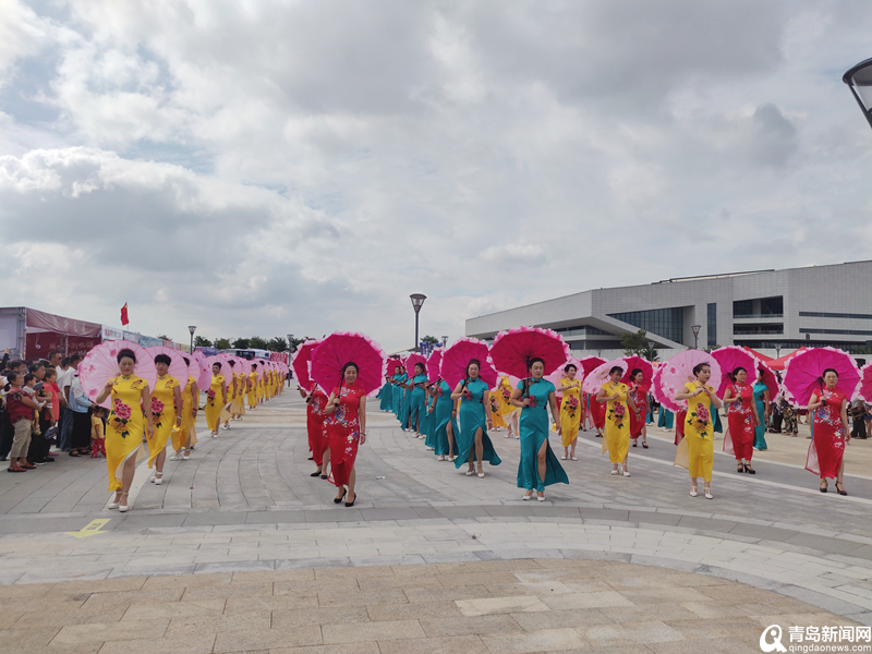 響應(yīng)時(shí)尚青島建設(shè)號(hào)召,開幕式上,舉辦了盛大的文藝演出。靚麗的身影、多彩的旗袍,再加上紅色的油紙傘舞動(dòng),120人參演的獻(xiàn)禮國慶大型旗袍秀,40人一組以“紅黃綠”三種主題顏色擺出“國”“慶”“70”字樣,向偉大祖國70華誕獻(xiàn)禮?!霸谶@樣一個(gè)日子,能參加演出,還有這么多人看,真是非常開心,也非常有紀(jì)念意義?!眳⒀萑藛T紛紛表示。