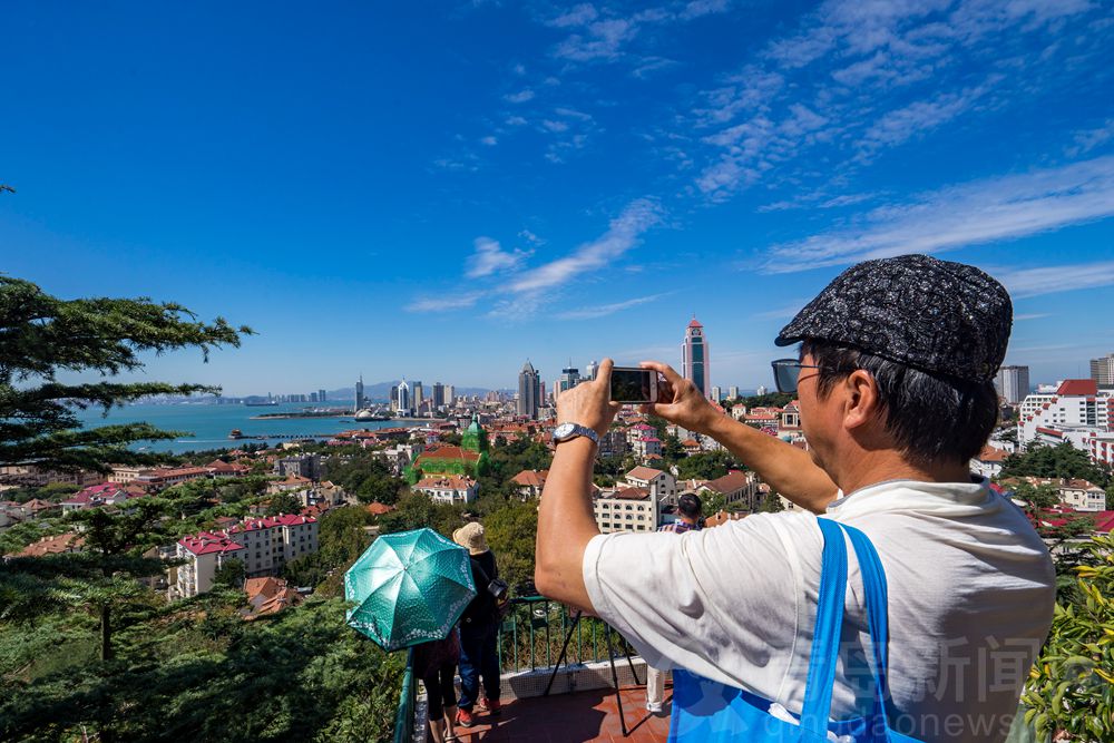 青島新聞網(wǎng)9月16日訊(文/龐為圖/孟憲朋)秋高氣爽,在青島信號山,游人們登頂“大紅球”,360度俯瞰全城,秋日里的紅瓦綠樹碧海藍(lán)天令人陶醉。