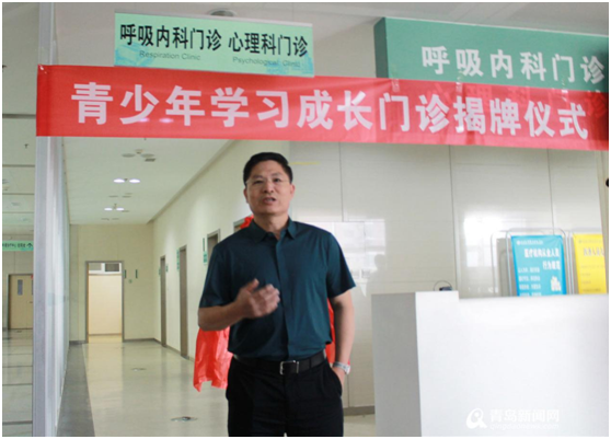 16日上午,在山東大學齊魯醫(yī)院(青島)心理科副主任醫(yī)師高進對青少年學習成長門診的簡單介紹和副院長潘新良教授的講話中,青少年學習成長門診順利揭牌,該門診將幫助更多青少年解開學習成長過程中的“心結”。