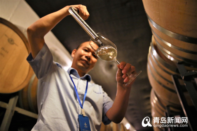 2018年上合峰會,華東干紅、干白等多款葡萄酒亮相國際外交舞臺,為華東、為青島贏得了榮譽(yù)。據(jù)了解,這幾款酒均來自華東的一個(gè)釀酒團(tuán)隊(duì),團(tuán)隊(duì)負(fù)責(zé)人叫劉春生?!胺鍟吓e杯那一刻,我的心情既激動又感動?!眲⒋荷貞浧鸢肽甓鄟韴F(tuán)隊(duì)的努力,依然激情澎拜,這是劉春生釀酒多年來最難忘的事情。
