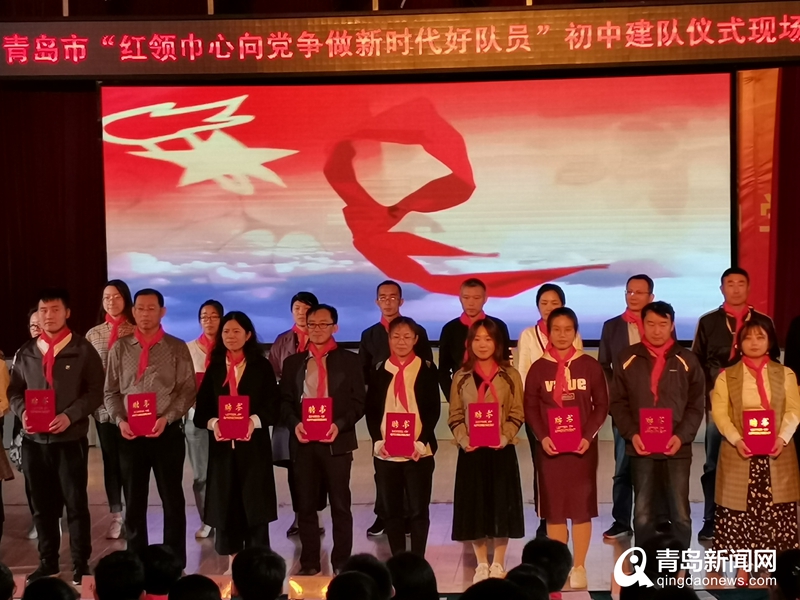本次中學少先隊建隊儀式在激揚的出旗曲中拉開了序幕。當旗手揮動著鮮紅的少先隊隊旗,全體少先隊員高唱起隊歌,聲音洪亮、氣勢如虹。隨后大隊輔導員宣布了建隊決定,向中隊輔導員頒發(fā)了聘書,向新建中隊授中隊旗。即墨區(qū)第二十八中學七年級共建中隊42個,各班主任受聘擔任了中隊輔導員。