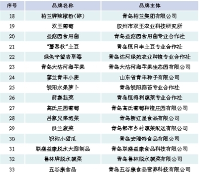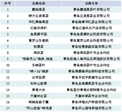 第四屆青島知名農(nóng)產(chǎn)品品牌名單
