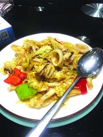 這也是道白菜和海鮮的搭配。即墨鼎隆山莊的總經(jīng)理崔松嶺廚師出身,擅長把海鮮和蔬菜搭配制作菜品。白菜嫩葉撕成片。筆管魚洗凈,鍋燒開,放姜片和筆管魚焯水控干。大蒜搗成泥加生抽和香油拌勻。把白菜葉、筆管魚和蒜泥拌勻即可。