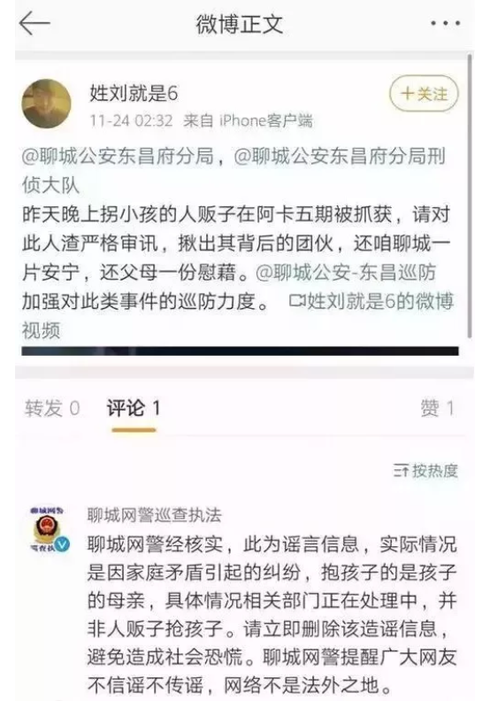 針對網(wǎng)友反映的問題,聊城網(wǎng)警回應(yīng)表示,經(jīng)調(diào)查核實(shí),此為謠言信息,實(shí)際情況是因家庭矛盾引起的糾紛,抱孩子的是孩子的母親,具體情況相關(guān)部門正在處理中,并非人販子搶孩子。