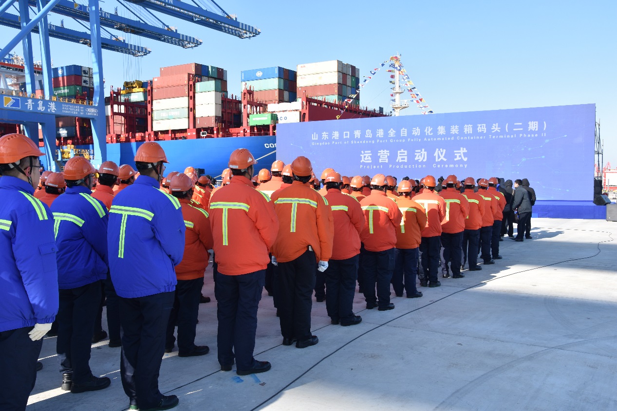 11月28日,全球首個(gè)“氫+5G”智慧生態(tài)港在山東港口青島港投產(chǎn)運(yùn)營(yíng)。該碼頭岸線長(zhǎng)660米,擁有 2個(gè)泊位,設(shè)計(jì)吞吐能力170萬標(biāo)準(zhǔn)箱/年,配備9臺(tái)雙小車岸橋(STS)、40臺(tái)高速軌道吊(ASC)和45臺(tái)自動(dòng)導(dǎo)引車(L-AGV)。