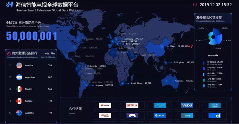 海信智能電視全球監(jiān)控數(shù)據(jù)。