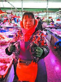 在鎮(zhèn)江北路農貿市場,記者看到很多攤位都有墨魚出售。來自滕州的業(yè)主蔣繼玉在市場賣海鮮多年,什么季節(jié)上什么貨她很清楚。蔣繼玉告訴記者,這段時間碰到墨魚的大流,價格比以往便宜不少。12月7日上午九時,蔣繼玉剛從小港碼頭趕回市場。星期六是市場最為繁忙的一天,很多老人都會采購海鮮,等待孩子們回家聚餐。這天,蔣繼玉比往常多進了上百斤的海鮮,僅僅墨魚就進了200多斤。 蔣繼玉介紹,這次趕上了墨魚汛期,所以這次碼頭捕撈上來的墨魚非常多,價格也便宜。記者看到,幾個塑料筐里都盛著墨魚,上面還有碎冰。蔣繼玉按照墨魚的大小分別擺放,一斤左右一只的墨魚28元一斤,再小一點的25元一斤。記者了解到,在碼頭,成筐買大小不挑每斤10元。但是,墨魚大小不一,小墨魚到傍晚,賠本也要處理了。