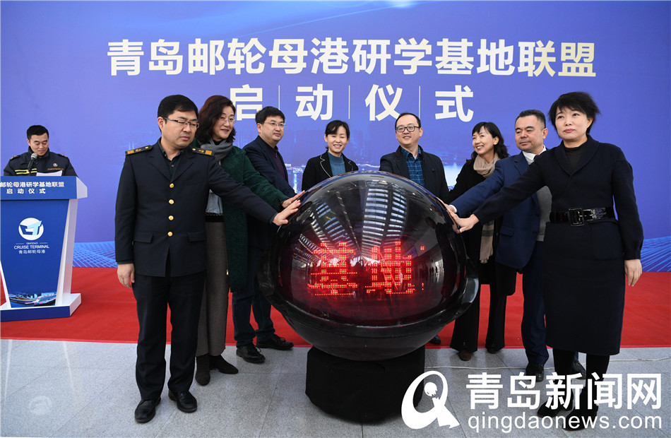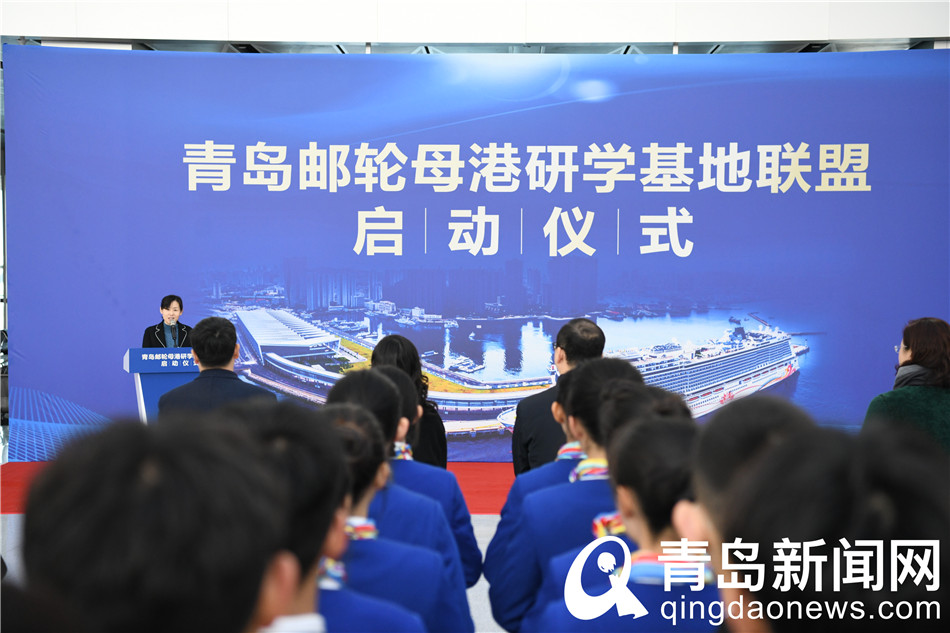 青島郵輪母港研學(xué)基地聯(lián)盟啟動儀式現(xiàn)場。