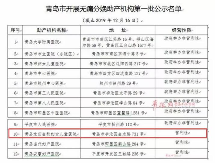 青島市開展無痛分娩助產(chǎn)機(jī)構(gòu)!青島龍?zhí)锝鹎飲D女兒童醫(yī)院
