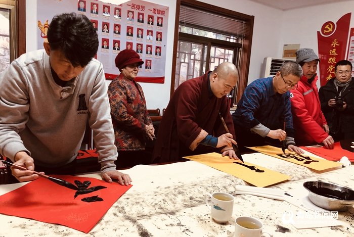 活動(dòng)當(dāng)天,華嚴(yán)管理處擠滿了前來(lái)領(lǐng)“?!钡拇迕瘛R粋€(gè)個(gè)新穎創(chuàng)意的福字,散發(fā)著淡雅的墨香。書法老師揮毫潑墨,或行云流水,或龍飛鳳舞,造型各異的“福”字道出了村民對(duì)美好生活的向往。