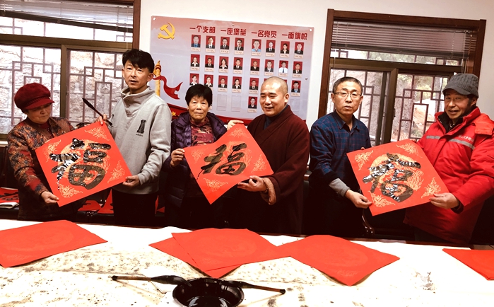 “我們的書法愛(ài)好者一大早就開(kāi)始忙活了,一天下來(lái)送出去了600多份‘福’字?!比A嚴(yán)管理處處長(zhǎng)匡淼告訴記者,本次送“?!被顒?dòng)主要聯(lián)動(dòng)了長(zhǎng)嶺村和返嶺村兩個(gè)村的村民,也得到了華嚴(yán)管理處的三位書法愛(ài)好者的支持。