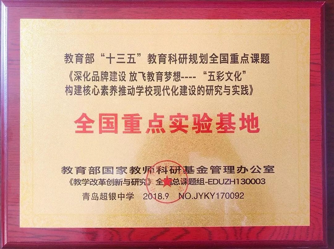 青島超銀中學(xué)研究課題《深化品牌建設(shè),放飛教育夢想——“五彩文化”構(gòu)建核心素養(yǎng)推進現(xiàn)代化學(xué)校建設(shè)的研究與實踐》作為教育部“十三五”教育科研規(guī)劃全國重點課題順利結(jié)題,并榮獲科研成果一等獎。這也成為超銀學(xué)校建校以來獲得的首個國家級科研獎項。9月23日,超銀教育集團召開了該課題結(jié)題會。另外,超銀學(xué)校心理健康研究中心的國家級課題《淺談中華優(yōu)秀傳統(tǒng)文化在家庭教育中的作用》也已正式申請立項。近三年來,超銀學(xué)校已經(jīng)有200余項科研成果順利完成。