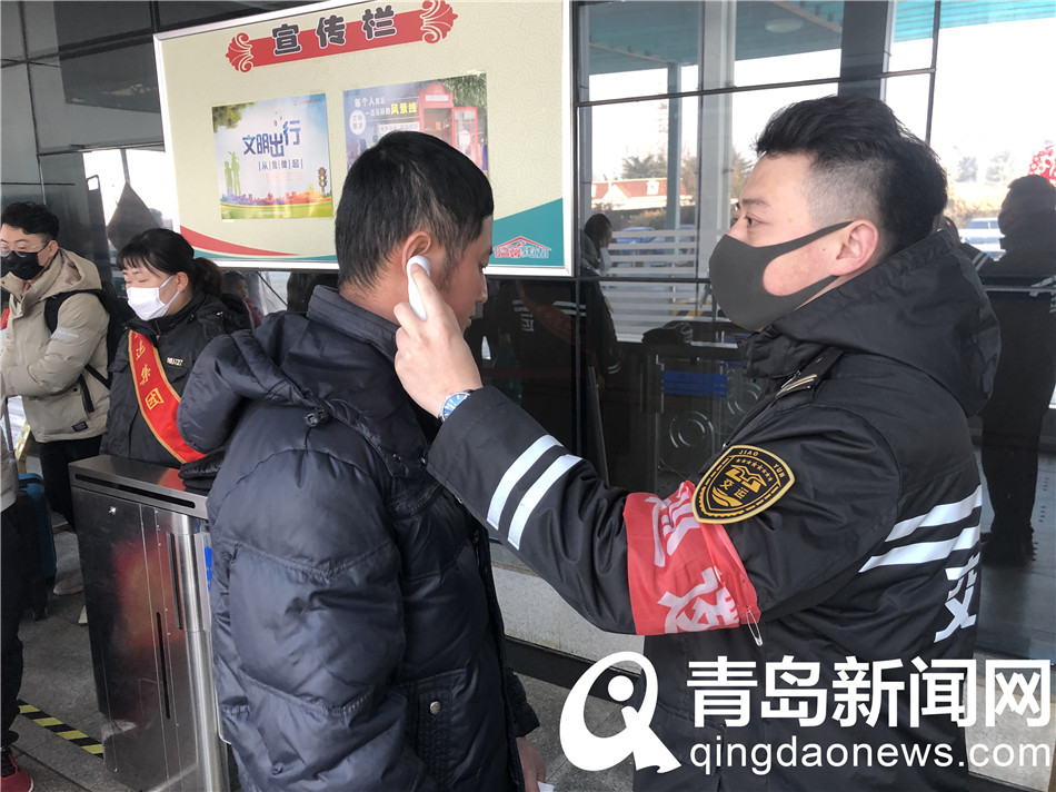交運(yùn)汽車總站為旅客測(cè)體溫。