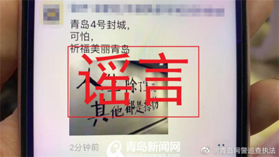 青島新聞網(wǎng)2月2日訊(記者 丁淑華)近日,一則“青島將于2月4日封城”的消息在朋友圈廣泛傳播。經(jīng)核實(shí),此消息為虛假消息。公安機(jī)關(guān)已對發(fā)布該信息的網(wǎng)民張某某,依法教育訓(xùn)誡。青島網(wǎng)警提醒:當(dāng)前正值防控新型冠狀病毒感染肺炎疫情的關(guān)鍵時(shí)刻,請廣大網(wǎng)民自覺抵制網(wǎng)絡(luò)謠言,不造謠、不信謠、不傳謠。密切關(guān)注官方信息,科學(xué)防護(hù),共克時(shí)艱。