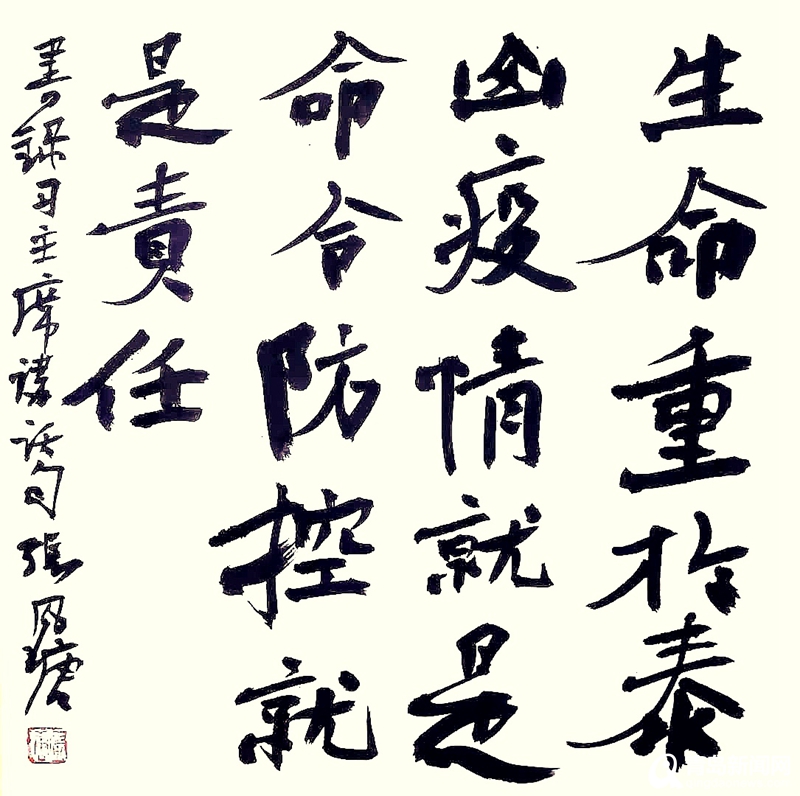 青島新聞網2月5日訊(記者 王超)近日以來,全國各地團結一致、萬眾一心,正在與新型冠狀病毒疫情展開一場嚴峻的斗爭。青島市書法家協會自1月30日發(fā)出“和你在一起"號召創(chuàng)作抗擊新型冠狀病毒疫情主題作品倡議后,協會所屬會員,積極參與,共獻愛心。在短短的幾天時間里,青島市書法家協會主席范國強、青島畫院院長張鳳塘、青島市書法家協會常務副主席兼秘書長郭強,以及姜樂平、楊乃瑞、劉詠、劉健、宋文京、張穎、高巖、董坤、張耀輝等青島市書法家協會副主席,與島城百余位書法家們先后以抗擊新型冠狀病毒肺炎疫情為主題,精心創(chuàng)作謳歌一線醫(yī)務人員、謳歌人民堅定抗疫的書法作品四百余幅。