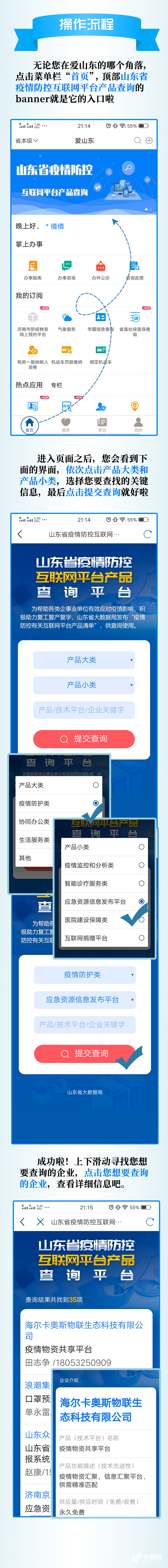 山東省疫情防控互聯(lián)網(wǎng)平臺(tái)產(chǎn)品詳情掃碼下載“愛(ài)山東”APP即可快速查詢(xún):