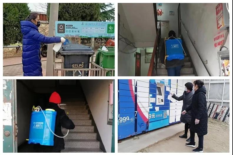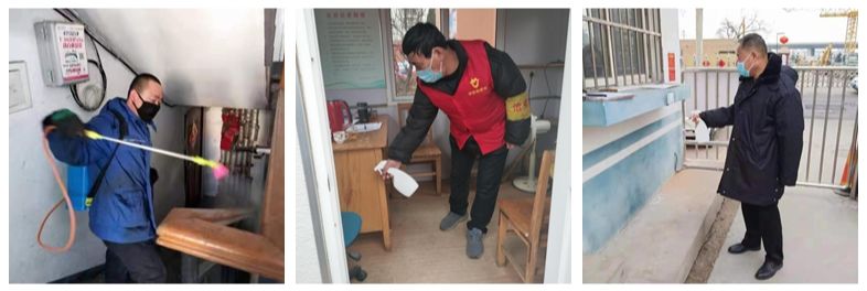 四中一社區(qū)工作人員積極做好疫情監(jiān)測和防范宣傳工作,社區(qū)專門安排保潔人員以及物業(yè)人員每天對轄區(qū)內(nèi)41棟樓院環(huán)境、單元樓道、廢棄口罩專用收集箱,生活垃圾桶、辦公場所公共區(qū)域等每日進行定時噴灑消毒,對樓梯扶手、門把手進行擦拭消毒,徹底將病毒拒之門外,為轄區(qū)老百姓撐起防護傘。