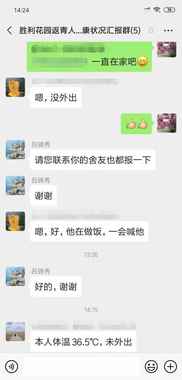 針對社區(qū)外出返青人員進行精準摸排,對摸排出的異地返青人員進行信息登記核實,社區(qū)將外出返青人員建立微信群,在群里每天集中管理監(jiān)控,確保不遺留一戶,并叮囑自行隔離14天,每天在群里自測、報2次體溫,或發(fā)微信小視頻等,做好登記留存?zhèn)洳椤?/p>