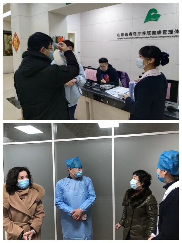 山東省青島療養(yǎng)院院長于善良,黨委書記丁品,副院長王學宏、單述剛、孫少萍和有關部門多次到健康管理中心進行慰問和督導。分管副院長孫少萍第一時間對健康管理中心疫情防控工作做出部署要求,健康管理中心全體職工嚴格執(zhí)行衛(wèi)健委和療養(yǎng)院疫情防控工作要求,把疫情防控措施做實做細,共同打贏肺炎疫情防控阻擊戰(zhàn)。