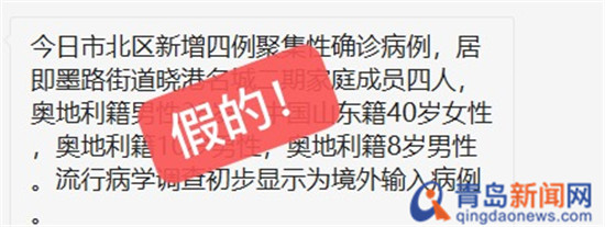 辟謠丨網(wǎng)傳市北區(qū)新增四例奧地利輸入性病例?假的