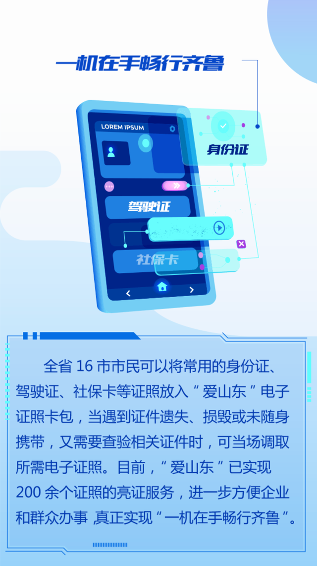 來來來!身份證駕駛證社??ń】悼I業(yè)執(zhí)照…“愛山東”app已集合電子證照200余類!歡迎來試用!醫(yī)師證、護(hù)士證,景區(qū)全免費(fèi)假期出門忘了帶,也馬上用得上喲!