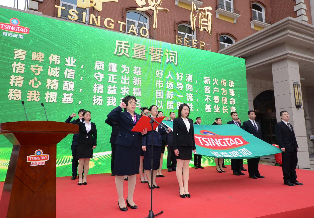 4月10日,青啤迎來第42個“質(zhì)量日”暨“提高質(zhì)量紀(jì)念日”,一場莊嚴(yán)盛大的宣誓儀式在其發(fā)源地——青島啤酒廠舉行。青島啤酒釀酒師代表、國評委代表、創(chuàng)新研發(fā)代表、基層持續(xù)改善員工代表現(xiàn)場宣誓,重溫青啤的質(zhì)量宣言。