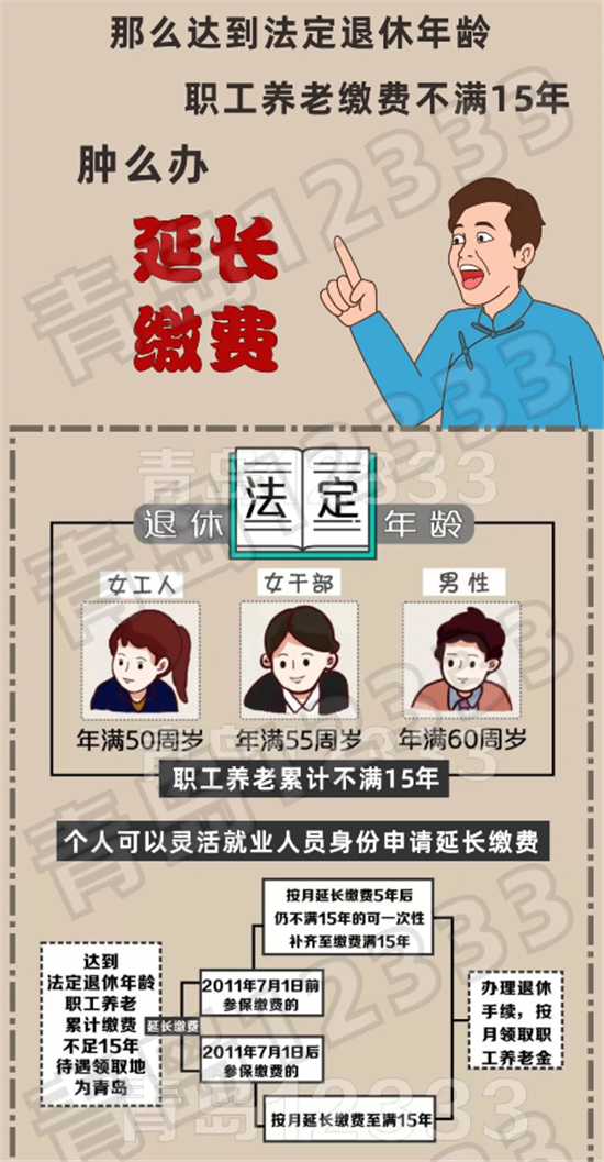 那么,個(gè)人達(dá)到法定退休年齡時(shí),職工養(yǎng)老保險(xiǎn)累計(jì)繳費(fèi)不滿15年,不能辦理退休手續(xù),無(wú)法領(lǐng)取養(yǎng)老金怎么辦?市人社局介紹,早在2011年,實(shí)施《中華人民共和國(guó)社會(huì)保險(xiǎn)法》若干規(guī)定,就解答了這一問(wèn)題——延長(zhǎng)繳費(fèi)。