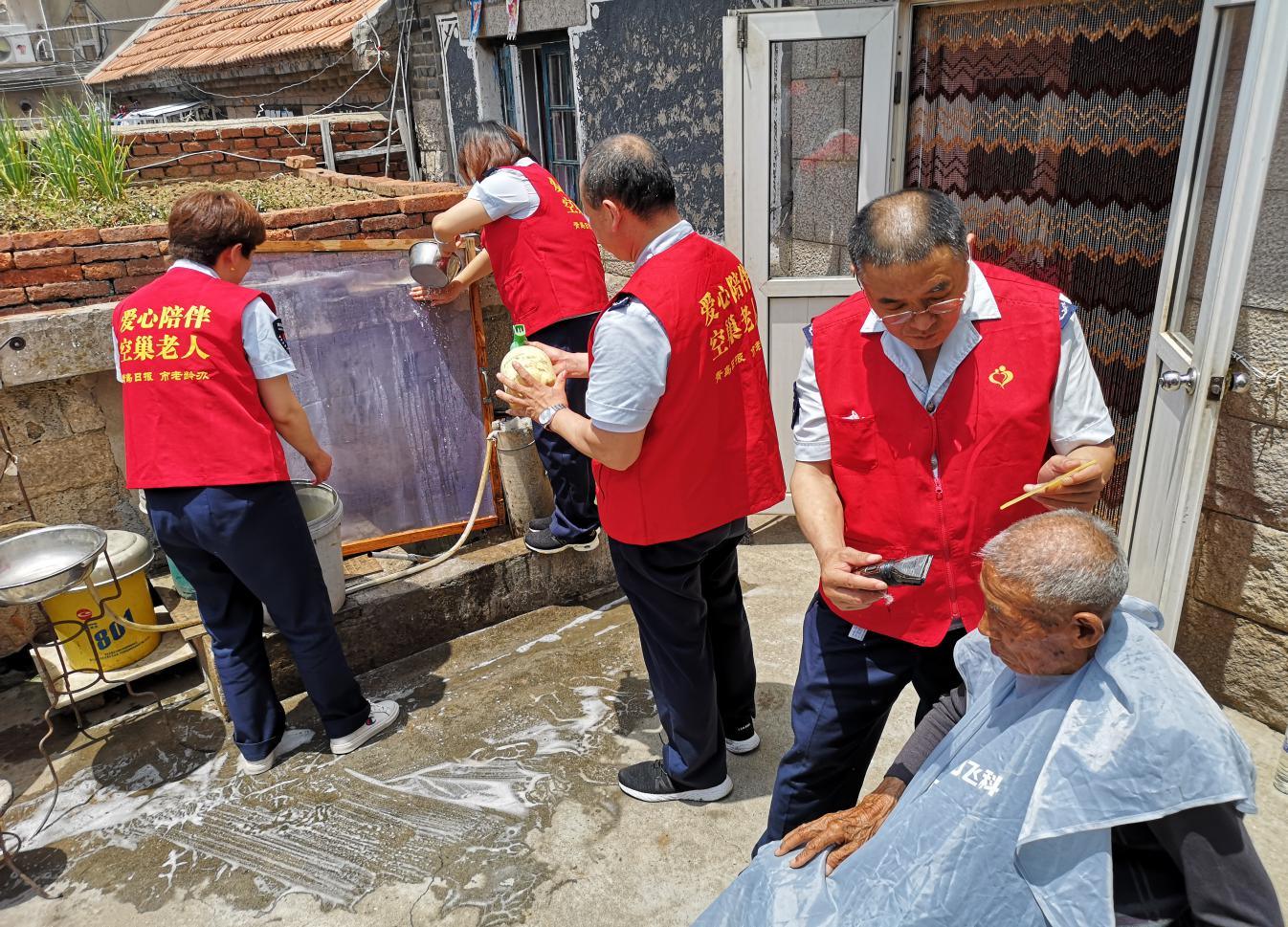 最后,志愿者們來到了 90歲的曲方平大爺家,志愿者詢問了老人最近的身體情況,為曲大爺送上了愛看的報(bào)刊和雜志和水果。曲大爺說,最近村里又有幾位老人接連去逝,老人家眼含淚花有些傷感。志愿者勸慰曲大爺沒事聽聽?wèi)蚯纯措娨?,多想點(diǎn)開心的事。天熱了,志愿者們見老人家中的紗窗還未掛上,便從角落里找出來,大家洗刷干凈后將紗窗掛起,志愿者李啟筍則在一旁為曲大爺洗頭理發(fā),理發(fā)后的老人精神百倍立顯年輕。臨走,曲大爺執(zhí)意將志愿者們送到街門口??粗先斯聠蔚纳碛?,志愿者們很感慨,人到老年有著諸多年輕人感悟不到的事,志愿者們只有多陪伴讓老人們感受到更多的歡樂時(shí)光。