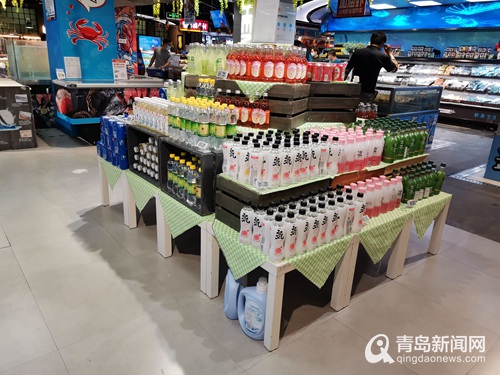 北京盒馬鮮生現(xiàn)場的女士嘉檳果汁飲料陳列。