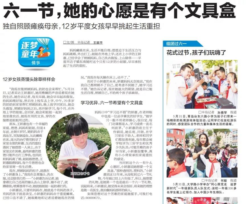 2016年5月,在青島愛心市民與日喀則貧困學(xué)生結(jié)對的活動,我結(jié)對資助藏族學(xué)生,并專門寫信鼓勵對方。信中的兩句話,代表了我的心聲:“孩子們,你們能踏進學(xué)校學(xué)習(xí)是幸運的,我小時候都沒有條件上學(xué)。希望你們好好學(xué)習(xí),快樂成長,用知識改變命運?!?/p>
