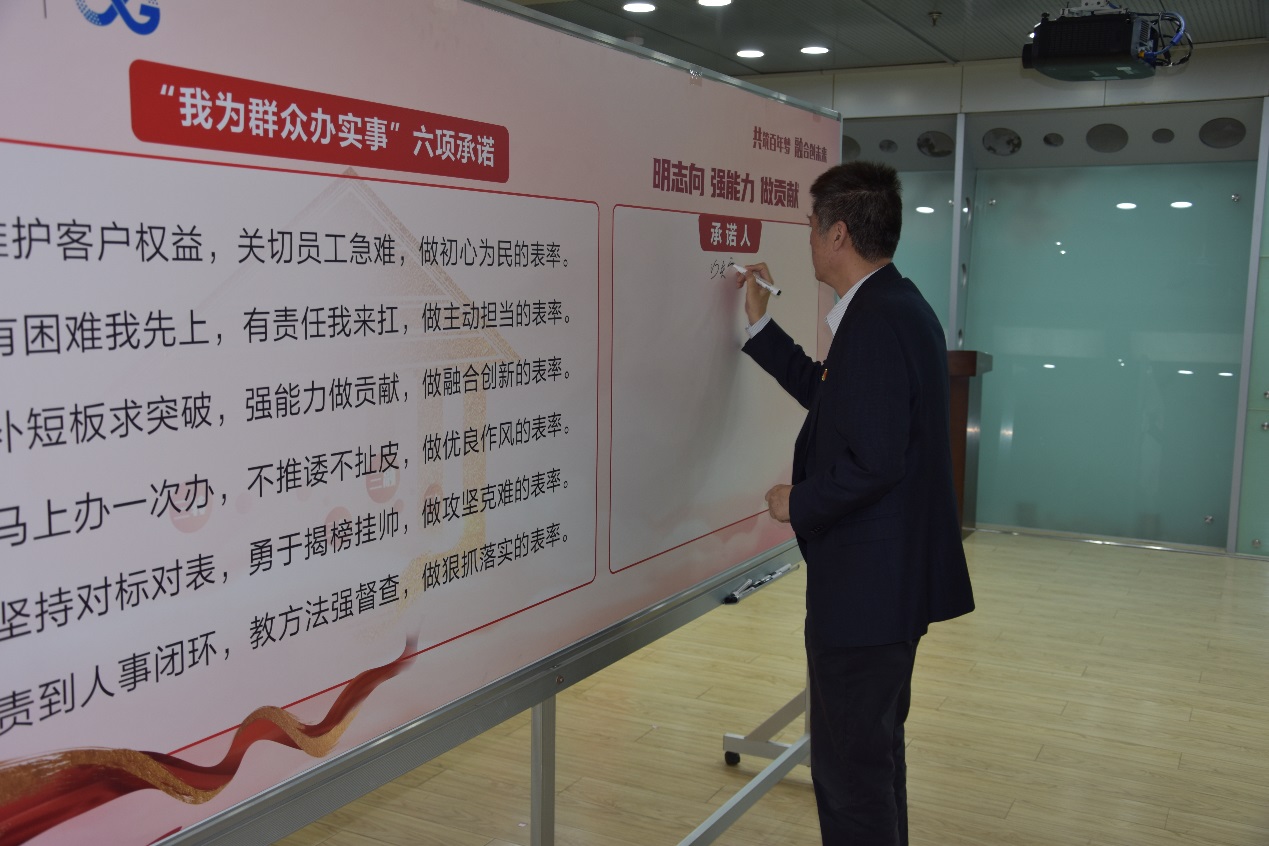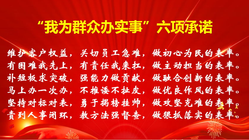 為進(jìn)一步提高站位,壓實責(zé)任,青島公司黨委結(jié)合實際發(fā)起“我為群眾辦實事”實踐活動六項承諾推進(jìn)實踐活動走深走實,六項承諾從堅守為民初心、主動擔(dān)當(dāng)作為、做實融合創(chuàng)新、打造優(yōu)良作風(fēng)、持續(xù)攻堅克難、堅持狠抓落實等方面對開展好實踐活動提出了標(biāo)準(zhǔn),進(jìn)一步壓實了學(xué)史力行的要求。部署推進(jìn)會上黨支部書記代表現(xiàn)場宣讀了六項承諾,黨委班子成員帶頭簽名承諾。
