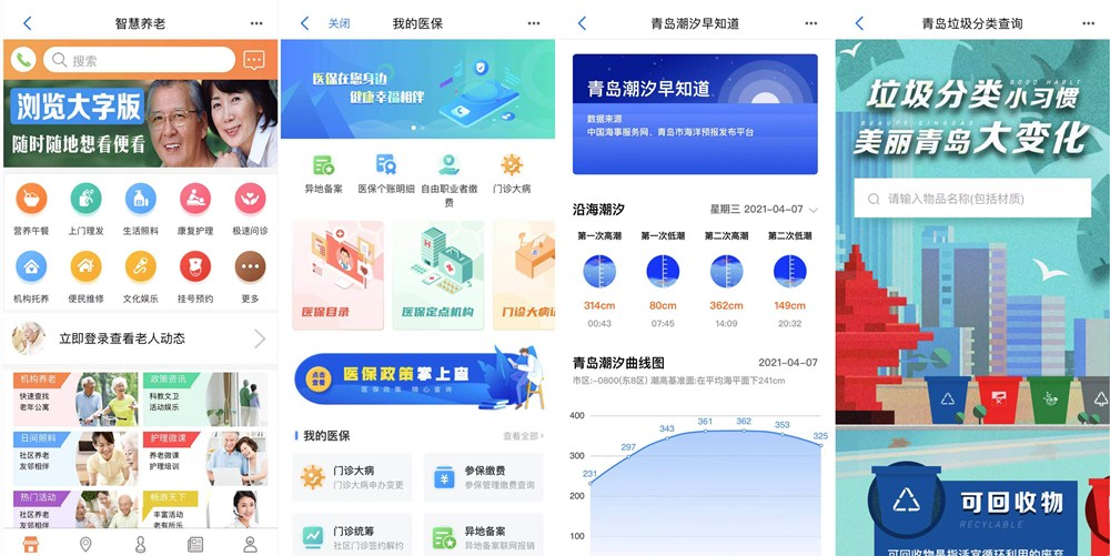 此外,還有青島潮汐早知道、青島垃圾分類查詢、常用電話等青島本地相關(guān)特色服務(wù)加入,根據(jù)青島本地居民的需求,不斷更新便民服務(wù)新招式。