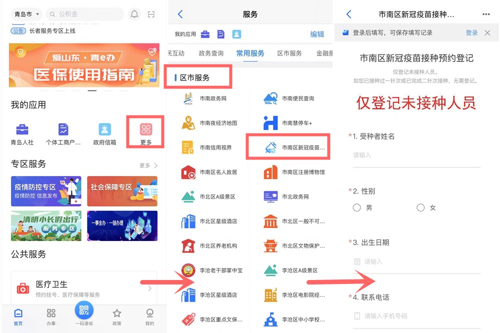 青島新聞網(wǎng)4月9日訊 青島市目前正有序開展新冠疫苗接種工作,各區(qū)市線上預約入口也都已經(jīng)陸續(xù)開放。為保證疫苗接種工作順利進行,市南區(qū)新冠疫苗接種預約登記入口已經(jīng)在“愛山東·青e辦”接入服務。需要注意的是,此次登記僅針對未接種人員,如已接種過一針次或已完成二針次接種,則無需登記。