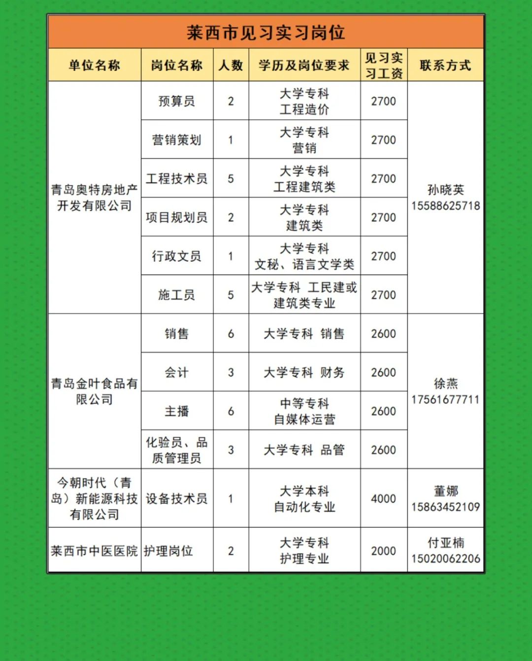 即墨區(qū)、平度市、萊西市見習(xí)實(shí)習(xí)崗位推薦來啦!