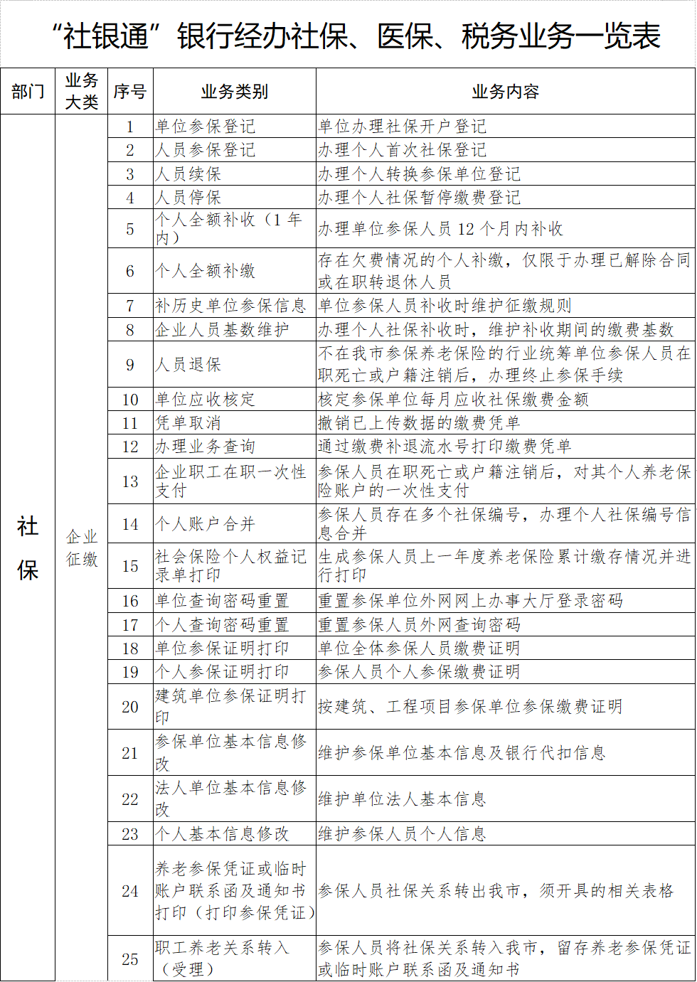 目前,青島市“社銀通”合作銀行包括交通銀行、青島農(nóng)商銀行、工商銀行、青島銀行等4家商業(yè)銀行分布在全市范圍的120個(gè)網(wǎng)點(diǎn),延伸的服務(wù)事項(xiàng)包括社保類56項(xiàng),醫(yī)保類53項(xiàng),稅務(wù)類9項(xiàng)。例如,企業(yè)社保開戶、人員參保登記、企業(yè)參保職工退休申請(qǐng)、社會(huì)保險(xiǎn)轉(zhuǎn)移申請(qǐng)、單位及個(gè)人社會(huì)保險(xiǎn)參保證明、參保信息修改、繳費(fèi)及待遇領(lǐng)取情況查詢等企業(yè)和參保人員日常辦理頻次較高的業(yè)務(wù),都可通過就近的“社銀通”銀行網(wǎng)點(diǎn)辦理。
