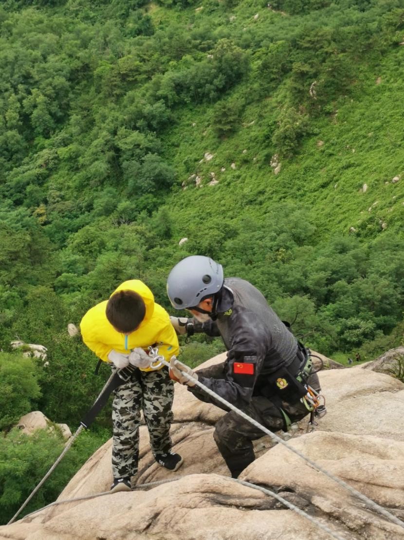 趙希勇做了孩子父親以后,經(jīng)常帶小孩或者學(xué)生學(xué)習(xí)攀巖,“我總覺得跟我們相比,現(xiàn)在的孩子都沒有童年,他們太缺少跟大自然接觸的機(jī)會了。”為此,他特別珍惜帶孩子們上山的機(jī)會,“攀巖的時候,孩子爬到了一半嚇哭了,這種時候我從來不輕易施以援手,他們需要自己面對這種困境。我負(fù)責(zé)的就是保證安全?!笔聦嵣?,他的這種辦法對孩子們很管用,每次孩子哭完就能戰(zhàn)勝自我了,“有一個家長跟我說的一句話我感觸很深,只有大自然配得上孩子的這份天真。”家長們會口碑相傳讓孩子們來跟著趙希勇學(xué)習(xí)攀巖,他說,某種程度上他們承擔(dān)了學(xué)校的部分責(zé)任。讓他感到無奈的是,很多孩子不能堅持來訓(xùn)練,是因為家長的體力不支。