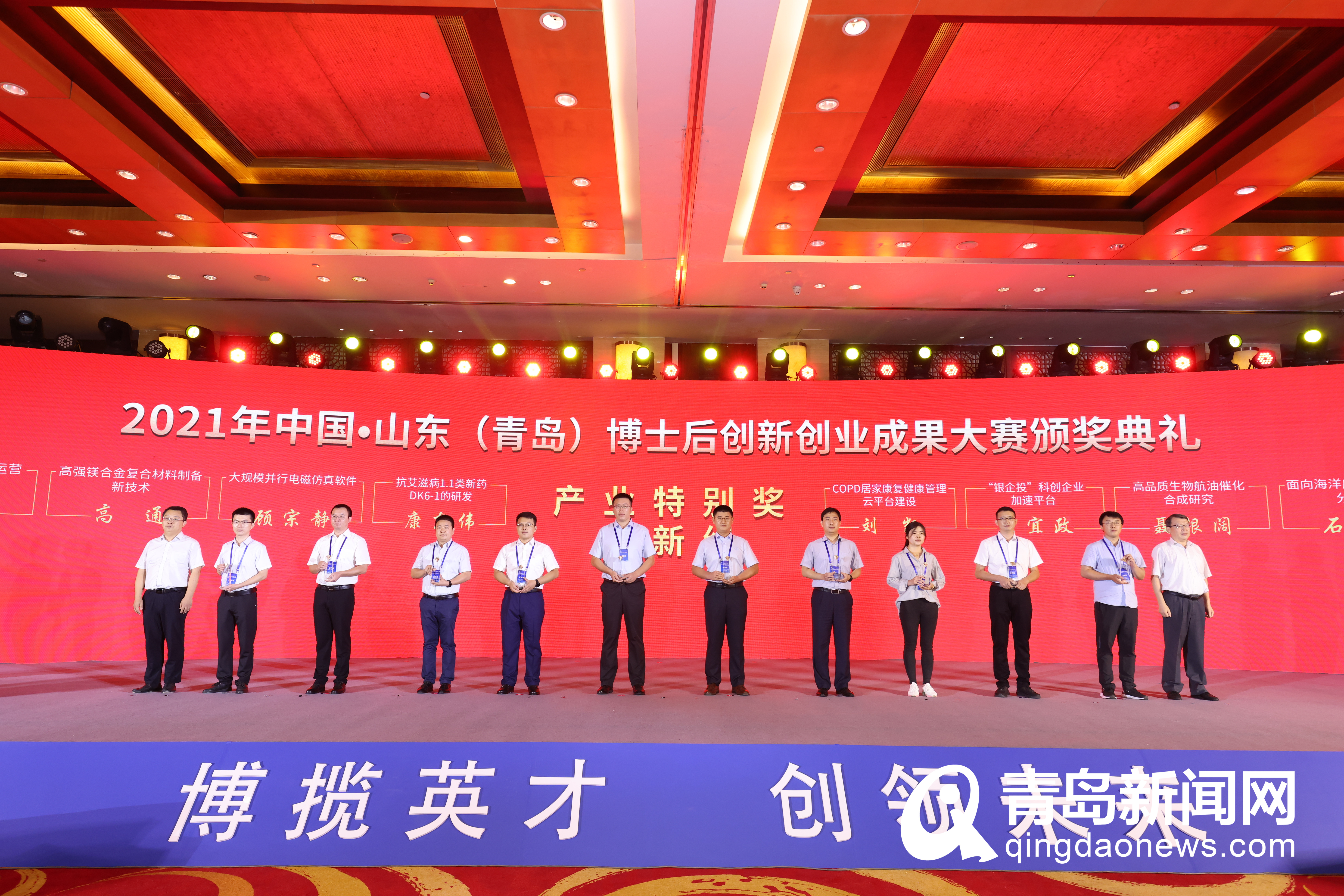 青島新聞網(wǎng)9月29日訊(記者 孫雙超)9月29日上午,2021年中國·山東(青島)博士后創(chuàng)新創(chuàng)業(yè)成果大賽頒獎典禮和山東博士后創(chuàng)新創(chuàng)業(yè)論壇在青島市城陽區(qū)隆重舉行。大賽主題為“博攬英才、創(chuàng)領(lǐng)未來”,典禮由青島市人民政府、山東省人力資源和社會保障廳共同主辦,山東省留學(xué)人員和專家服務(wù)中心、中共青島市委組織部、青島市人力資源和社會保障局、中共青島市城陽區(qū)委員會、城陽區(qū)人民政府等承辦?;顒舆€同期舉辦了博士后項目落地簽約、青島市博士后科技服務(wù)團授旗等。人力資源和社會保障部留學(xué)人員和專家服務(wù)中心副主任王霄,山東省人力資源和社會保障廳黨組成員、副廳長周春艷,青島市政府黨組成員、秘書長、一級巡視員孫繼,青島市委組織部副部長,市人力資源和社會保障局黨組書記、局長胡義瑛,城陽區(qū)委副書記、區(qū)政府區(qū)長解宏勁等領(lǐng)導(dǎo)出席、致辭并為獲獎選手頒獎。
