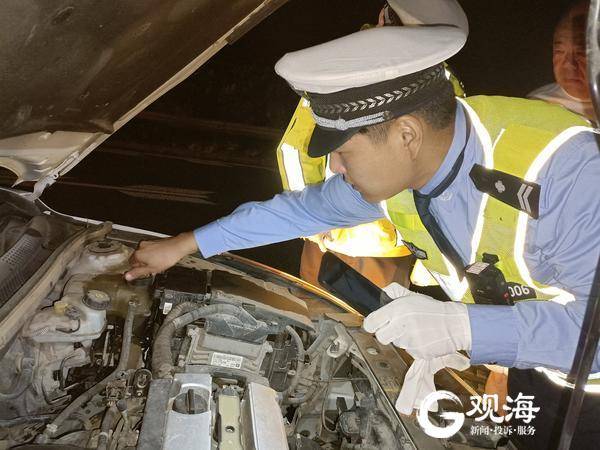 當(dāng)晚,民警巡邏到沈海高速下行線636km+900米處,一輛轎車打著雙閃停在應(yīng)急車道上,民警下車前去查看,是車輛“開鍋”了。王清軍和李旭日、宋超拿出了早已準(zhǔn)備好的那桶水對水箱進(jìn)行降溫。水溫降下后,民警對車輛進(jìn)一步檢查,發(fā)現(xiàn)符合安全行車條件后,才放心地讓司機(jī)繼續(xù)上路行駛。