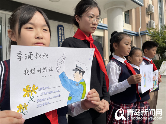 在李涌曾經(jīng)開展交通安全授課的膠州市瑞華小學(xué),老師和同學(xué)們深情回憶了李涌警官給他們帶來的精彩的交通安全授課,同學(xué)們也精心制作了繪畫作品,以此表達(dá)對英雄的懷念和致敬?!皟赡昵埃覄偵弦荒昙壍臅r候,李涌叔叔曾給我們上過一節(jié)安全課,他的教導(dǎo)一直提醒著我們安全出行記心間。”學(xué)生王?,幷f。