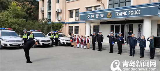 10月20日上午,在青島交警同三高速公路大隊駐地,“向李涌學(xué)習(xí)致敬活動暨巡邏急救包發(fā)放儀式”舉行?;顒觾x式上,李涌的女兒李圣來到現(xiàn)場,和大隊民警代表、膠州路政管理處代表、青島瑞華小學(xué)師生代表們一起緬懷英雄,向英雄致敬!在場的同三高速大隊的民輔警們向英雄的女兒李圣敬禮,青島瑞華小學(xué)的學(xué)生們?yōu)槔钍狭缩r艷的紅領(lǐng)巾,向英雄的女兒致以崇高的敬禮。