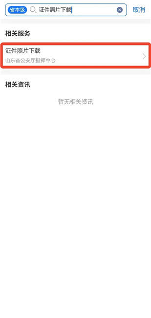 1.打開“愛山東”APP,首頁搜索“證件照片下載”,點擊進入(詳見圖1)。